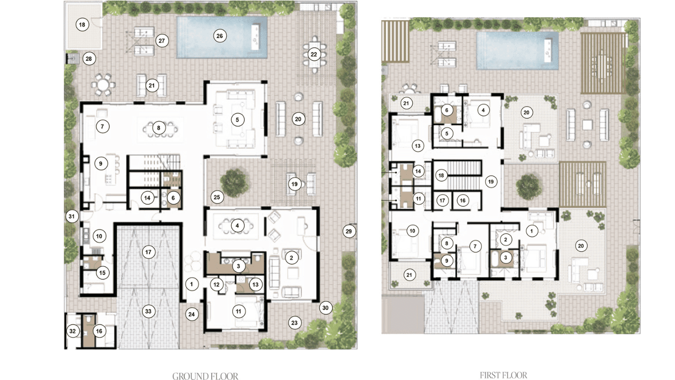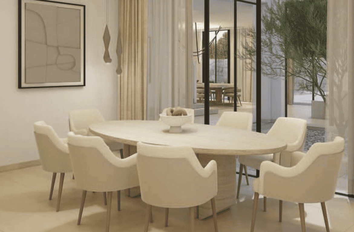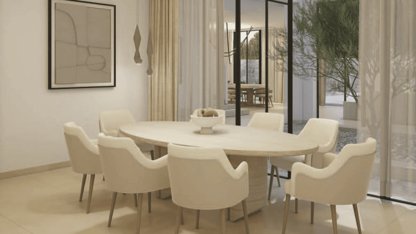 This 6 bedroom villa offers a bright and open layout. Large windows bring in natural light. The home has two balconies, two terraces and a maid’s room. The kitchen comes with built-in appliances. Panoramic windows give a wide view of the outdoor space.