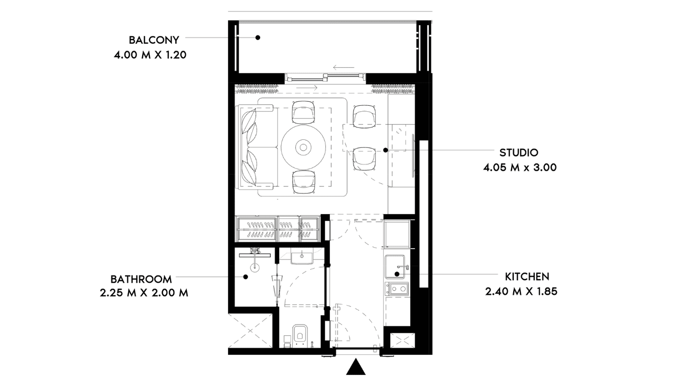 The studio comes fully ready. The kitchen includes cabinets and home appliances. Built-in wardrobes give smart storage. The bathroom is complete and modern. The layout suits daily living and smooth rental use. Investors benefit from steady demand in this area.