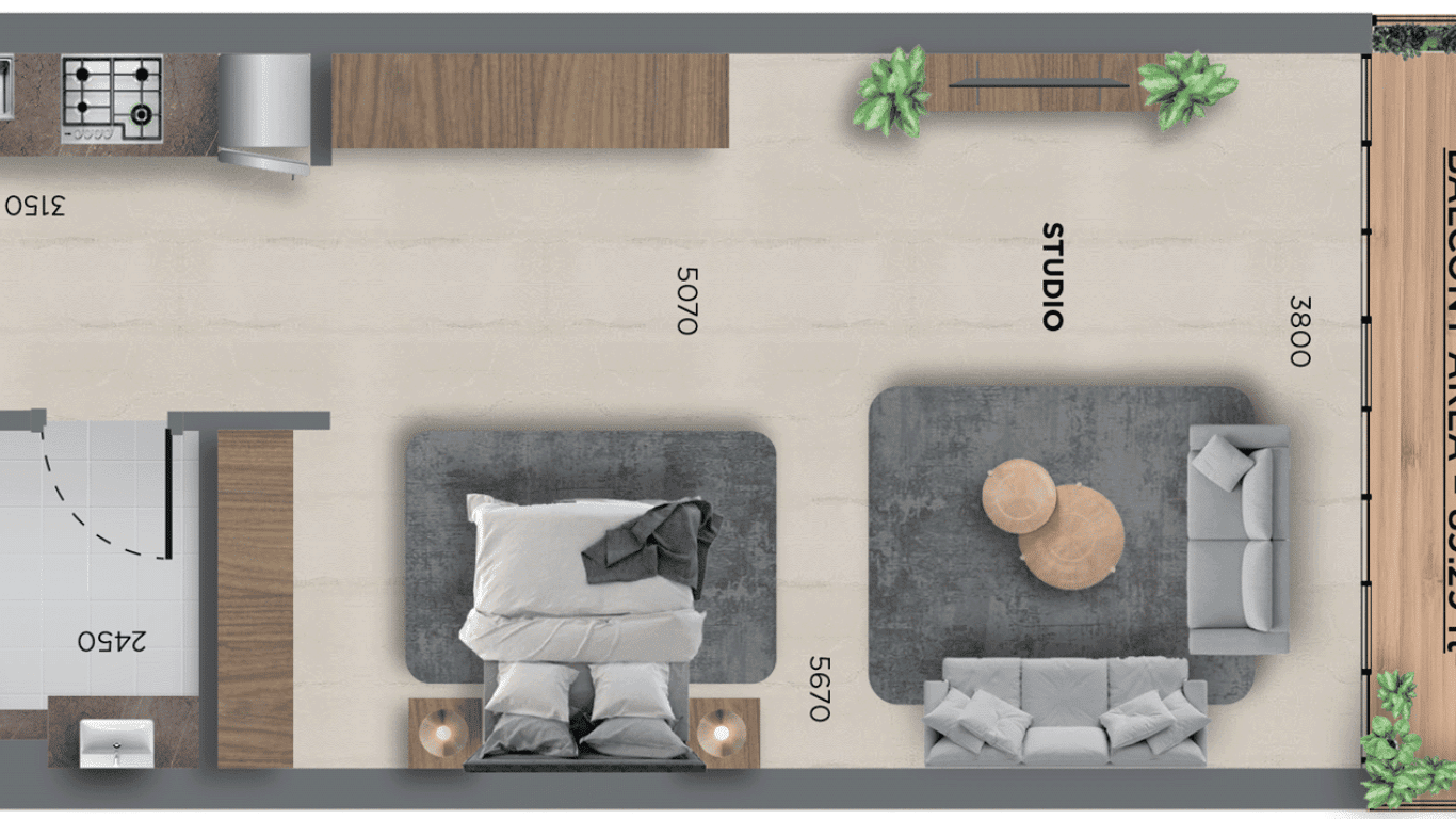 Studio for sale in Dubai, Jumeirah Village Circle, 368 Park Ln. The building uses solid concrete build with glass facades. Passenger and service lifts serve all floors. The studio offers 3.1 meter ceiling height. Wide windows bring in strong daylight. The finish looks clean and modern. The kitchen includes fitted appliances. Built-in wardrobes add storage space. Bathrooms come ready for use. A smart home system controls lighting and temperature. The layout suits living and rental use.